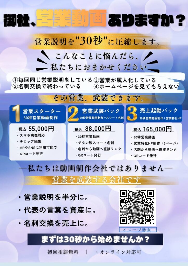 これを30秒で明確に伝える営業特化動画です。営業動画があることで、