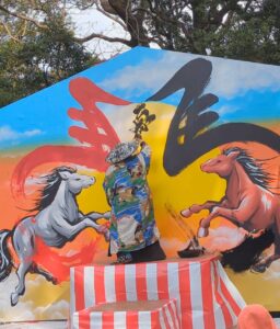 その後、巨大絵馬を仕上げるため、劔朧DOLLY によるライブペイントパフォーマンスを実施。